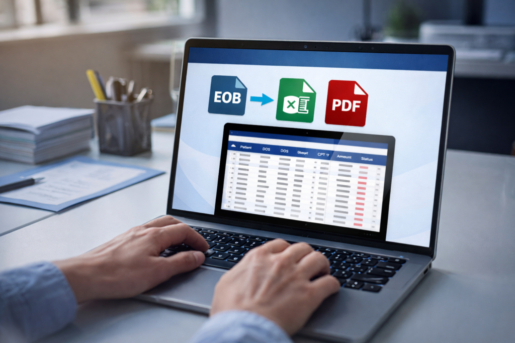 Paper EOBs slowing down your payment posting? Let our converter do the heavy lifting. Simply scan and upload paper EOBs, and our advanced optical character recognition (OCR) technology instantly digitizes and extracts the critical data. Patient responsibility, payment amounts, adjustment codes, and denial reasons are captured with pinpoint accuracy and converted into a digital format that seamlessly integrates with your practice management system. No more manual data entry errors.