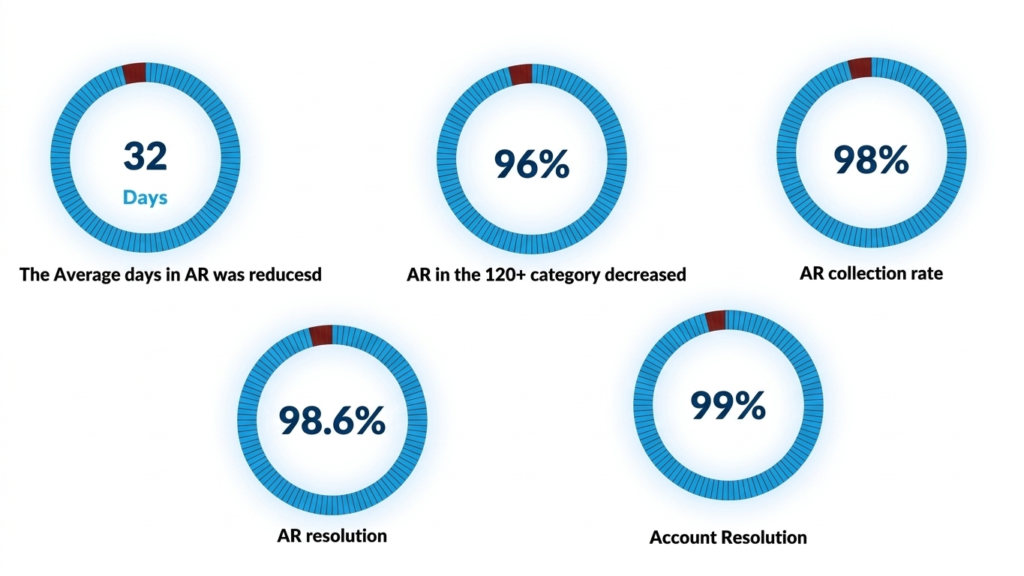 Discover our multi-pronged AR recovery success: 96% reduction in 120+ days AR, 98% collection rate, and average AR days reduced to 32. Download the case study.